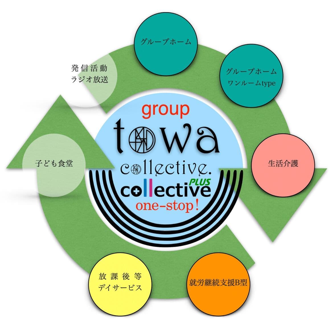 障害者グループホーム、就労継続支援、生活支援、障がい児支援事業を運営しています。グループ全体では発信活動、子育て支援活動なども実施し、ワンストップ体制、切れ目のない総合支援を軸に、長期的なライフスタイルをご提案いたします。 |